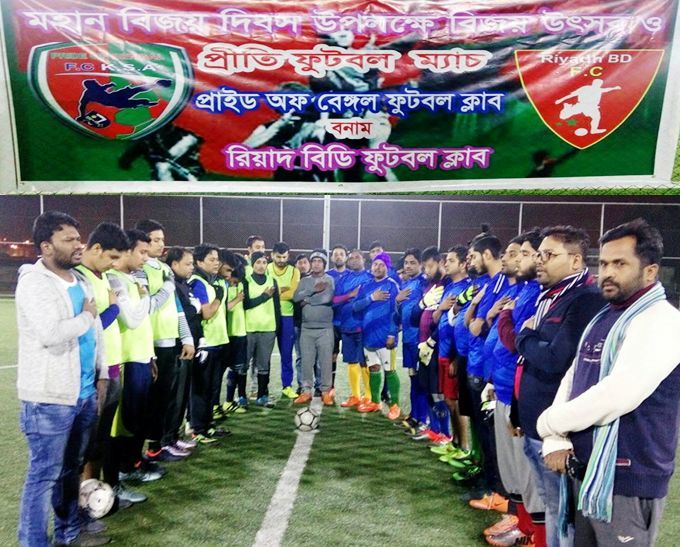 নিজস্ব প্রতিনিধি, বর্তমানকন্ঠ ডটকম, সৌদি আরব : ১৬ ডিসেম্বর শনিবার মধ্য রাতে রিয়াদের শিফা এলাকায় ওয়াদী হানিফা ফুটবল মাঠে ৮ ডিগ্রী সেলসিয়াস হীম শীতল ঠান্ডা আবহাওয়ায় প্রাইড অফ বেঙ্গল ফুটবল