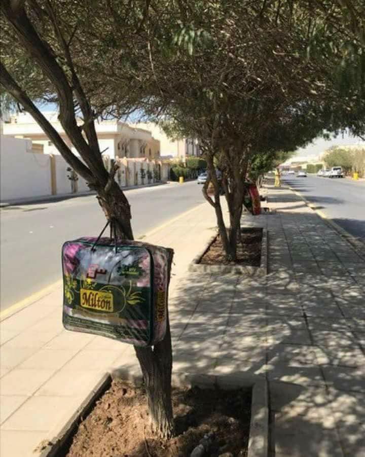 নিজস্ব প্রতিনিধি, বর্তমানকন্ঠ ডটকম, সৌদি আরব : শীতে যেনো অভাবী মানুষ কষ্টে না পড়েন সেজন্য কোন এক ব্যক্তি রাজধানী রিয়াদের একটি গাছে গাছে ঝুলিয়ে রেখেছেন কম্বল। টুইটারে ভাইরাল হওয়া কয়েকটি