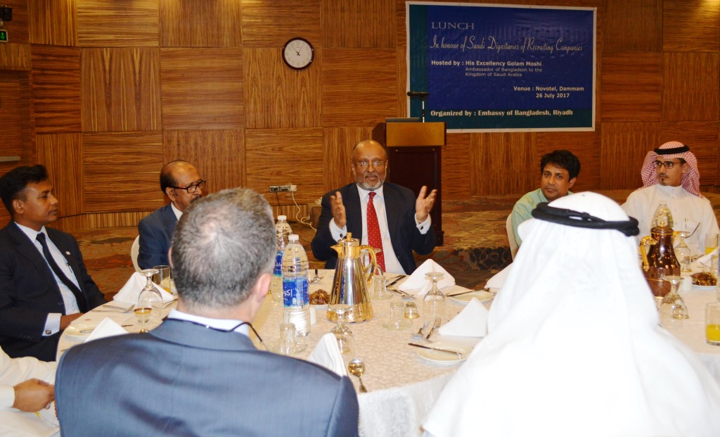 নিজস্ব প্রতিনিধি, বর্তমানকন্ঠ ডটকম, সৌদিআরব : বাংলাদেশ থেকে বিভিন্ন পেশার দক্ষ জনশক্তি নিয়োগ দেয়ার জন্য সৌদি আরবের বিভিন্ন কোম্পানিগুলোর প্রতি আহবান জানিয়েছেন সৌদি আরবে নিযুক্ত বাংলাদেশের রাষ্ট্রদূত গোলাম মসীহ। বুধবার
