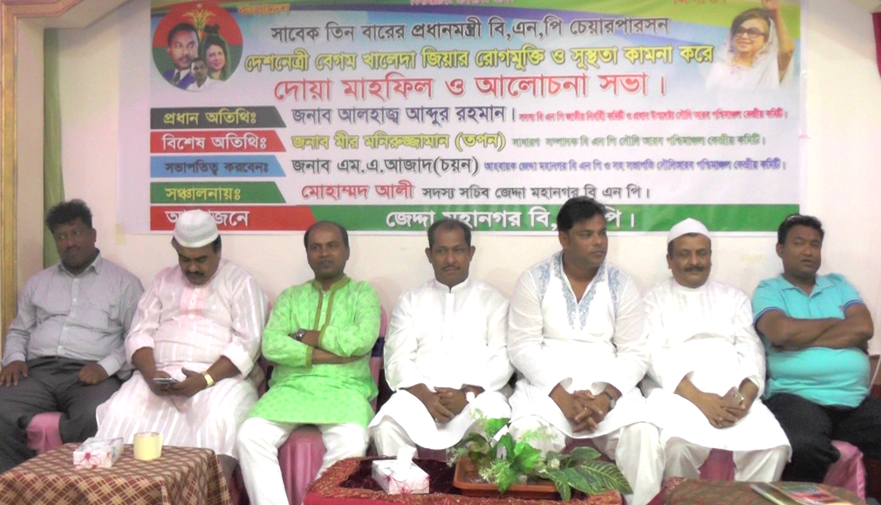 বাহার উদ্দিন বকুল, বর্তমানকন্ঠ ডটকম, জেদ্দা, সৌদি আরব : বিএনপি চেয়ারপার্সন বেগম খালেদা জিয়ার রোগমুক্তি ও সুস্থতা কামনায় দোয়া মাহফিল করেছে জেদ্দা মহানগর বিএনপি। দোয়াপূর্ব আলোচনা সভায় সভাপতিত্ব করেন, জেদ্দা মহানগর