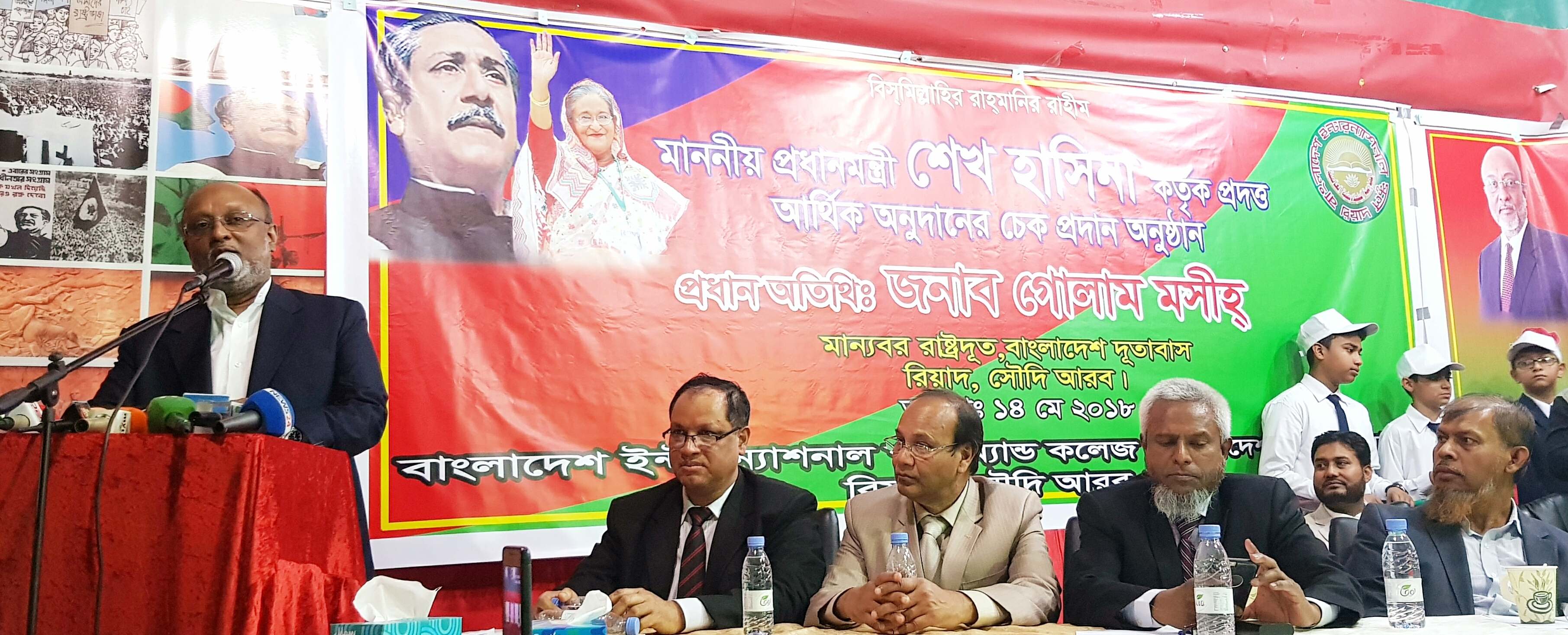 নিজস্ব প্রতিনিধি, বর্তমানকন্ঠ ডট কম, সৌদি আরব: প্রধানমন্ত্রী শেখ হাসিনা কর্তৃক প্রদত্ত তিন কোটি টাকা অনুদানের চেক হস্তান্তর করে রাষ্ট্রদূত গোলাম মসীহ স্কুলের শিক্ষকদের ব্যক্তিগত টিউশনী বন্ধের আহবান জানান। তিনি