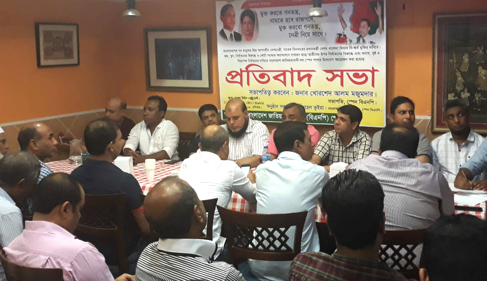 কবির আল মাহমুদ, বর্তমানকন্ঠ ডটকম, স্পেন : বিএনপি‘র চেয়ারপারসন বেগম খালেদা জিয়ার মুক্তির দাবিতে বিএনপি স্পেন শাখার উদ্যোগে প্রতিবাদ সভা অনুষ্ঠিত হয়েছে। স্থানীয় সময় রবিবার (৮জুলাই) রাতে মাদ্রিদের বাংলা টাউন