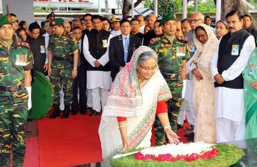 মঙ্গলবার (১০ জানুয়ারি) সকাল ৭টার দিকে প্রথমে তিনি প্রধানমন্ত্রী হিসেবে শ্রদ্ধা নিবেদন করেন। পরের দলীয় নেতাদের নিয়ে আওয়ামী লীগ সভাপতি হিসেবে শ্রদ্ধা নিবেদন করেন। শ্রদ্ধা নিবেদন শেষে তিনি বঙ্গবন্ধু ভবনের ভেতরে যান এবং সেখানে আধাঘণ্টারও বেশি সময় অবস্থান করেন।