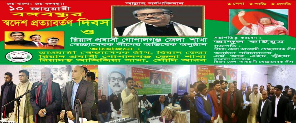 অনূষ্ঠানের সভাপতি ও রিয়াদ জেলা সভাপতি আলোচনা সভা শেষে স্বেচ্ছাসেবকলীগ রিয়াদ প্রবাসী গোপালগঞ্জ জেলা শাখার- লিটন হোসেন লিটুকে সভাপতি ও আশরাফুল খানকে সাধারন সম্পাদক করে ১০১সদস্যের অনূমোদিত কমিটি হস্তান্তর করেন। এবং স্বেচ্ছাসেবকলীগ রিয়াদ আজিজিয়া শাখার -জামাল হোসেন দাড়িয়াকে আহবায়ক ও মোরছালিন শেখকে যুগ্ন আহবায়ক করে অনুমোদিত আহবায়ক কমিটি হস্তান্তর করেন। এবং মজাদার খাবার ও মনোমূগ্ধকর এক সংঙ্গীতানুষ্ঠানের মধ্য দিয়ে উক্ত অনুষ্ঠানের সমাপ্ত করা হয়।