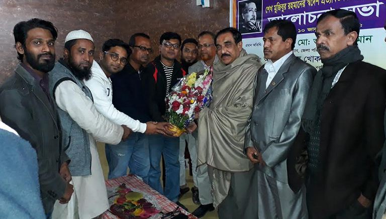 জেলা পরিষদের চেয়ারম্যান এড. আসাদোজ্জামান বলেন, ১৯৭১ সালের ছাব্বিশে মার্চের প্রথম প্রহরে পাকিস্তানি বাহিনী বাঙালির অবিসংবাদিত নেতা বঙ্গবন্ধুকে তাঁর ধানমন্ডির বাসা থেকে গ্রেপ্তার করে নিয়ে যায়। তাঁকে বন্দী করে রাখা হয় পাকিস্তানের কারাগারে। বাঙালি যখন স্বাধীনতার জন্য যুদ্ধ করছে, বঙ্গবন্ধু তখন পাকিস্তানের কারাগারে প্রহসনের বিচারে ফাঁসির আসামি হিসেবে মৃত্যুর প্রহর গুনছিলেন। বাঙালিদের চূড়ান্ত বিজয় অর্জিত হওয়ার পর বিশ্বনেতারা বঙ্গবন্ধুর মুক্তির দাবিতে সোচ্চার হয়ে ওঠেন। আন্তর্জাতিক চাপে পরাজিত পাকিস্তানি শাসকগোষ্ঠী শেষ পর্যন্ত বঙ্গবন্ধুকে সসম্মানে মুক্তি দিতে বাধ্য হয়। তিনি বলেন, বঙ্গবন্ধু শেখ মজিবুর রহমানকে বাঙালি জাতি প্রাণঢালা সংবর্ধণা জানানোর জন্য ১০ জানুয়ারি ভোর থেকে ছিল অপেক্ষায়। ঢাকা তেঁজগাও বিমানবন্দর থেকে তিনি তৎকালীন রমনা রেসকোর্স ময়দানে আসেন। বিকেল পাঁচটার দিকে রেসকোর্স ময়দানের জনসমুদ্রে বঙ্গবন্ধু আবেগাপ্লুত ভাষণে বলেছিলেন, ‘আমার বাংলাদেশ আজ স্বাধীন হয়েছে, আমার জীবনের স্বাদ আজ পূর্ণ হয়েছে, আমার বাংলার মানুষ আজ মুক্ত হয়েছে।’ তিনি বলেন, ১৯৭১ সালের ঐতিহাসিক ৭ মার্চ বঙ্গবন্ধু তাঁর ভাষণে দেশ স্বাধীন করার নির্দেশনা দিয়েছিলেন। ১০ জানুয়ারির ভাষণে তিনি দিয়েছিলেন দেশ গড়ার পরিকল্পনা ও প্রকাশ করেছিলেন তাঁর আজন্ম লালিত স্বপ্ন।