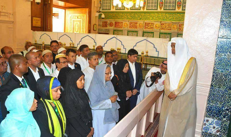 প্রধানমন্ত্রী মসজিদে নববীতে জোহরের নামাজ আদায় করে মহানবী হযরত মোহাম্মদ মোস্তফা (স.) এর রওজায় যান। সেখানে তিনি রিয়াজুল জান্নাতে নফল নামাজ পড়েন এবং জিয়ারত করেন; পরে মোনাজাতে অংশ নেন। রাতে মক্কায় ফিরে ওমরাহ পালন শেষে আজ মঙ্গলবার রাতে দেশে ফেরার কথা রয়েছে তার ।