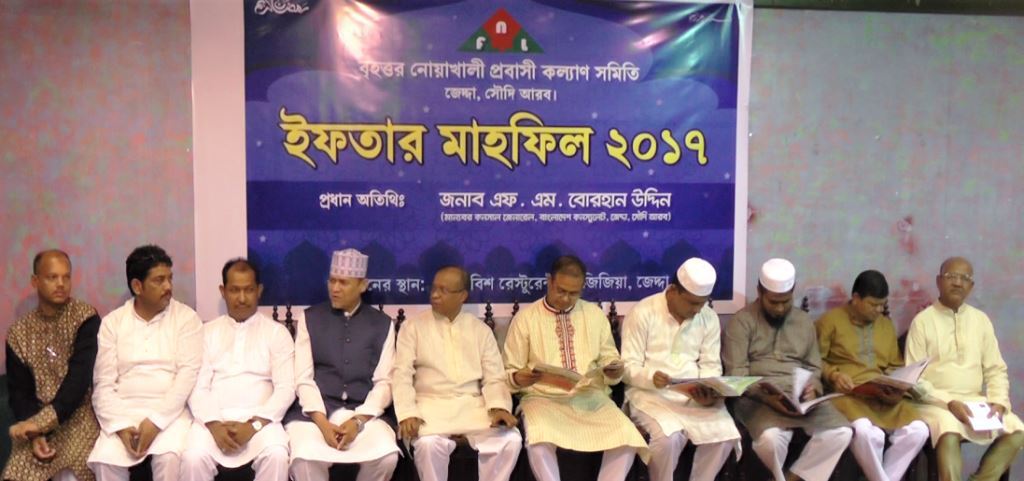 বাহার উদ্দিন বকুল, বর্তমানকন্ঠ ডটকম, জেদ্দা, সৌদি আরব : ০২জুন শুক্রবার জেদ্দার একটি হোটেলে বিশিষ্টজন ও সাধারণ নাগরিকদের নিয়ে এক ইফতার ও দোয়া মাহফিলের আয়োজন করে বৃহত্তর নোয়াখালী প্রবাসী কল্যাণ সমিতি, জেদ্দা। ইফতারের আগে পবিত্র কোরান থেকে তেলোয়ত এবং সিয়াম সাধনার উপর রোজার গুরুত্ব, ফজিলতসহ রোজা কায়েম করার বিষয়ে কুরান ও হাদিসের আলোকে বয়ান রাখেন, মাওলানা মোহাম্মদ মাশকুরুর রহমান। অতঃপর প্রবাসী সমাজ এবং বাংলাদেশের সুখ শান্তি ও সমৃদ্ধি কামনা করে মোনাজাত করা হয়।