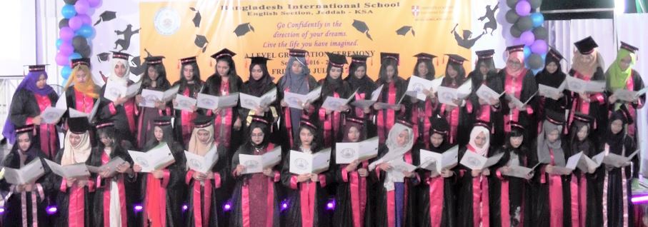 বাহার উদ্দিন বকুল, বর্তমানকন্ঠ ডটকম, জেদ্দা, সৌদি আরব : উৎসব মুখর পরিবেশে জেদ্দায় বাংলাদেশ ইন্টারন্যাশনাল স্কুল ইংলিশ শাখার এ-লেবেল গ্রেজুয়েশন সিরিমনি-২০১৭ স্কুল অডিটরিয়ামে অনুষ্ঠিত হয়েছে।