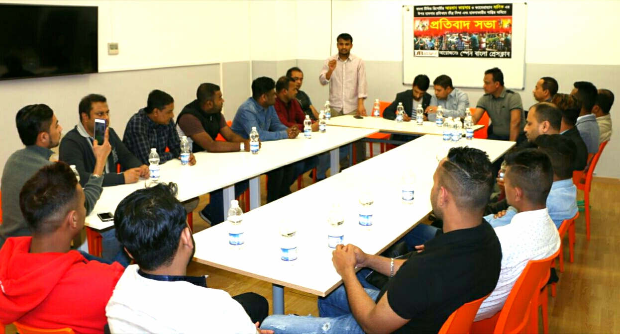 স্পেনে গণমাধ্যমকর্মীদের প্রতিনিধিত্বশীল সংগঠন স্পেন বাংলা প্রেসক্লাবের সাধারণ সম্পাদক আফাজ জনির সভাপতিত্বে ও সাংগঠনিক সম্পাদক লোকমান হোসেনের সঞ্চালনায় উক্ত প্রতিবাদ সভায় স্থানীয় সাংবাদিক ও কমিউনিটির ব্যক্তিবর্গ উপস্থিত ছিলেন। সভায় উপস্থিত থেকে বক্তব্য রাখেন, প্রেস ক্লাবের সিনিয়র সদস্য মিরন নাজমুল, প্রচার সম্পাদক লায়েবুর রহমান।