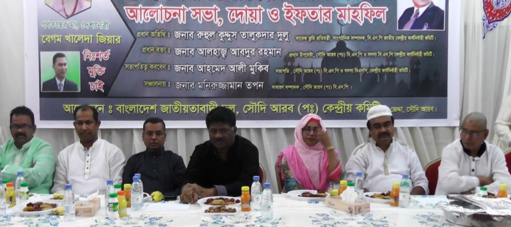 আলোচনা সভার সভাপতিত্ব করেন, সৌদি আরব পশ্চিমাঞ্চল বিএনপির সভাপতি ও কেন্দ্রীয় কার্যনির্বাহি কমিটির সদস্য আহমেদ আলী মুকিব। পশ্চিমাঞ্চল বিএনপির সাধারণ সম্পাদক মীর মনিরুজ্জামান তপন ও যুগ্ন সাধারণ সম্পাদক মোহাম্মদ শাহজাহান এর যৌথ পরিচালনায় প্রধান বক্তা ছিলেন, সৌদি আরব পশ্চিমাঞ্চল কেন্দ্রীয় বি এন পির প্রধান উপদেষ্টা ও কেন্দ্রীয় কার্যনির্বাহি কমিটির সদস্য আলহাজ্ব আব্দুর রহমান।
